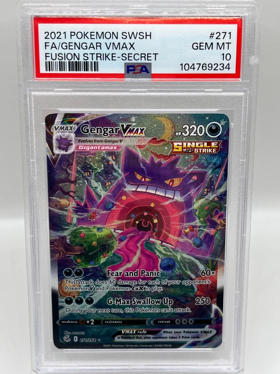 + Free ShippingGengar VMAX 271/264 Fusion Strike Alt Art Secret Rare 2021 Pokémon Card PSA 10