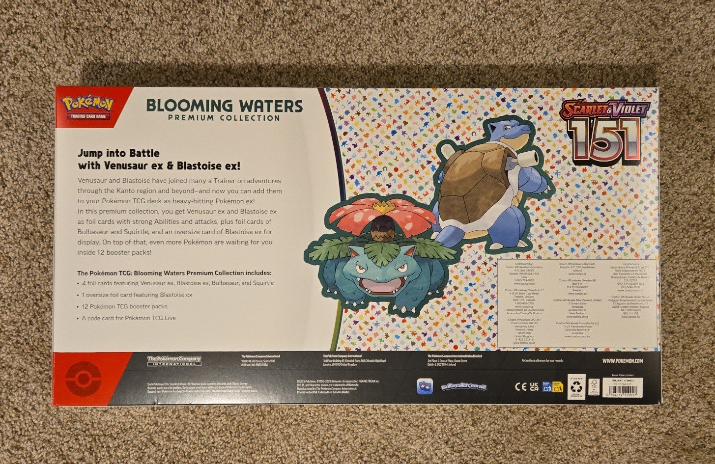 Hi this listing is for a Pokemon Scarlet and Violet 151 Blooming Waters Premium Collection Box. 12 Packs, 4 promo cards and 1 oversized promo card