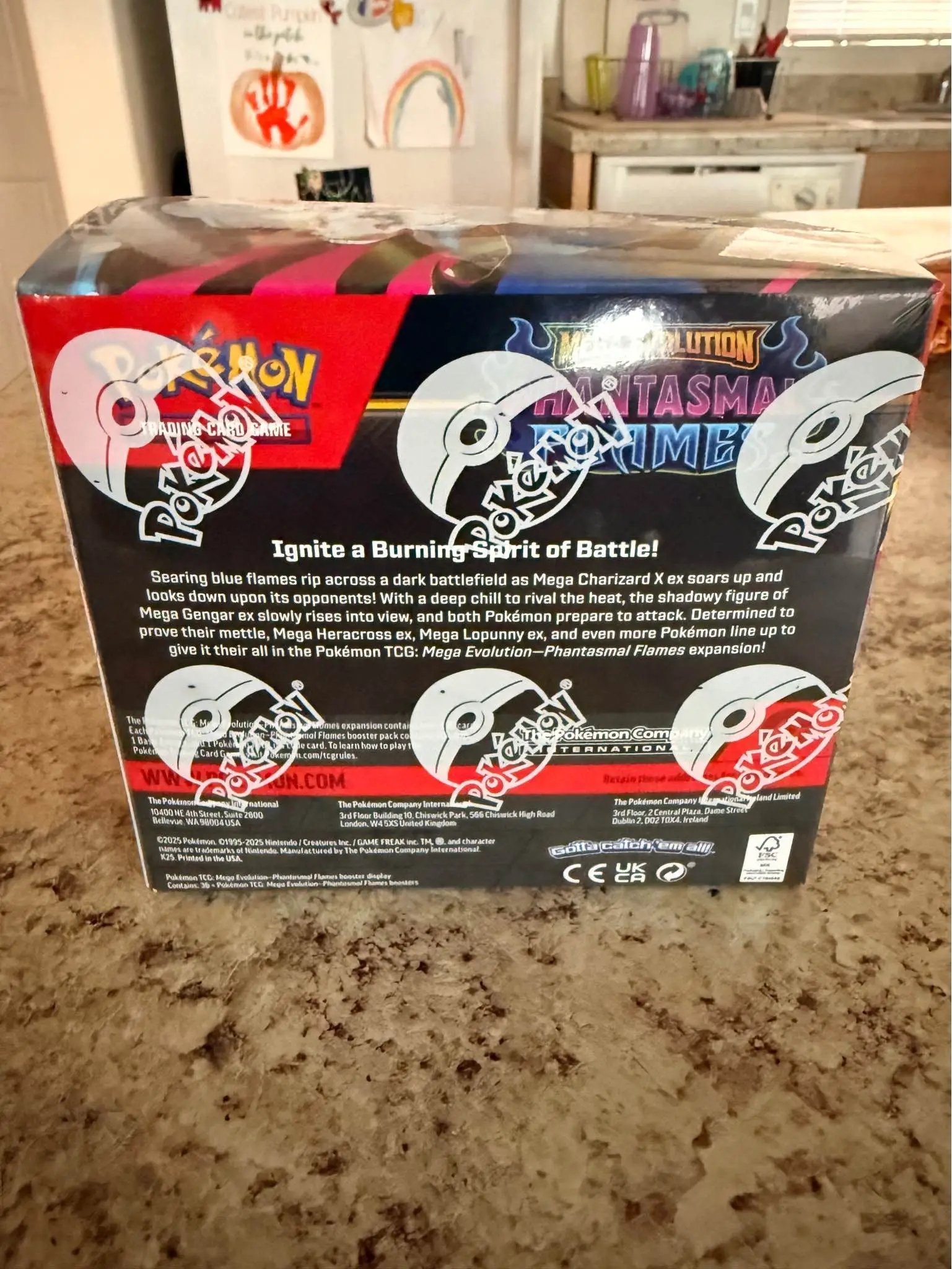 The Pokémon TCG Phantasmal Flames Booster Box is a factory-sealed box containing 36 packs of English language cards. This set features the character Charizard and a total of 360 cards made of card stock. The booster box is manufactured by Pokémon in the United States and comes with an autograph from 5ban Graphics, authenticated by Beckett Authentication Services (BAS). Perfect for collectors and players aged 6 and above, this set is part of the Pokémon TCG game and offers a chance to obtain rare cards from the Phantasmal Flames set.